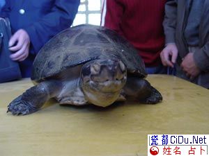 现场一位小伙子用手搔鹰嘴龟的尾部,刚才还缩头缩脚的鹰嘴龟慢慢地把头和脚伸了出来。头长约10厘米,嘴状似鹰嘴,四脚呈扁平状,各有五个脚趾,且脚趾头都有锋利的爪子。也许是因病腐烂或被其他动物咬断,尾巴较短。 cidu.net