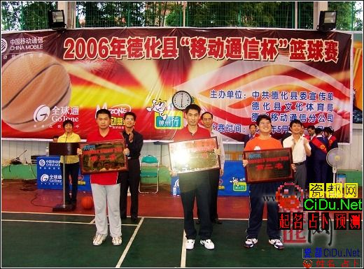 6月7日,2006年德化县“移动通信杯”篮球赛在园丁新村篮球馆圆满闭幕。本届篮球赛是由中共德化县委宣传部、德化县文体局主办,德化移动通信分公司协办的,旨在通过比赛增进友谊,加强团结,赛出水平,赛出风格,充分展现各单位职工良好的精神风貌。副县长吴志伟、宣传部副部长林志民、德化移动通信分公司经理蔡子恩等参加了闭幕式,并分别为各获奖队颁发了奖牌和奖品。//by http://CiDu.Net/