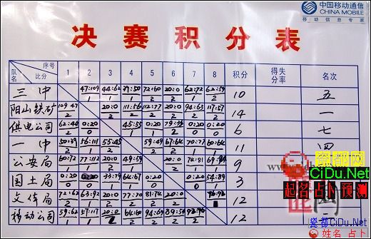 附:2006年德化县“移动通信杯”篮球赛比赛成绩: