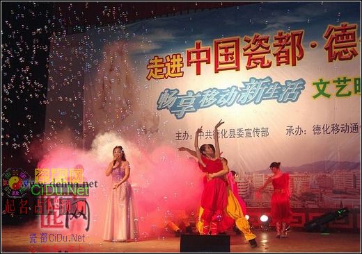 7月21日晚,县影剧院里流光溢彩,欢歌曼舞,一派热闹喜庆的气氛,“走进中国瓷都·德化”文艺晚会在这里精彩举行,庆祝中共德化县第十一次代表大会胜利召开。//by http://CiDu.Net/