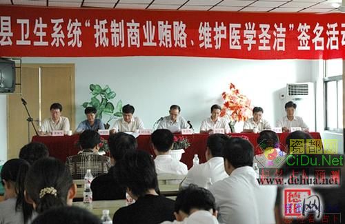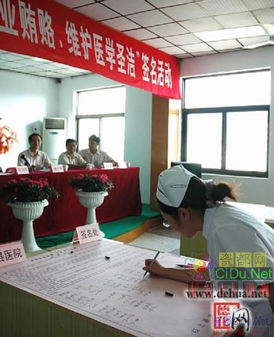 8月11日,在德化县医院七楼会议室,县卫生局举行了全县卫生系统百名医务人员代表拒绝商业贿赂签名活动。县政府吴志伟副县长在会上作重要讲话,县纪委、监察局、县政府纠风办等单位部分领导应邀到会指导签名活动。//by http://CiDu.Net/