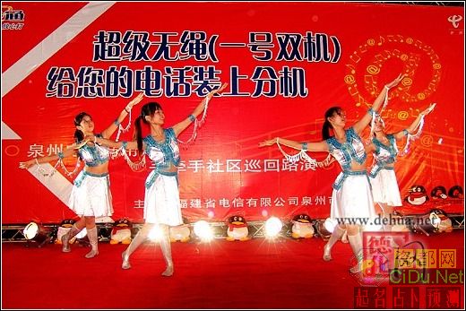 金秋十月秋风送爽,10月20日晚,县体育场内灯火辉煌,人流如织。为答谢广大市民对于中国德化电信分公司的厚爱,德化电信分公司在这里举办“超级无绳之夜”文艺晚会。现场活动邀请泉州著名歌舞团为市民献上歌舞、杂技等精彩的文艺节目,并有现场发短信参与有奖、现场办理业务赠送礼品等互动节目,前来办理业务以及欣赏文艺节目的市民骆绎不绝。