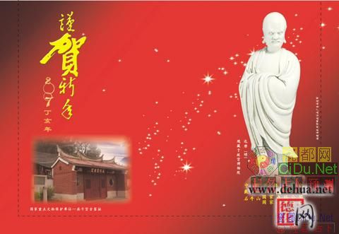 根据德委办[2006]50号《关于印发2006年“中国瓷都·德化”品牌宣传工作意见的通知》文件精神,由县委宣传部、县邮政局联合设计制作品牌宣传贺卡2套,每套售价2.8元(含邮资),欢迎各乡镇、各单位向邮政局营业窗口踊跃订购。详情请登录《德化网》(http://www.dehua.net)查询。//by http://CiDu.Net/