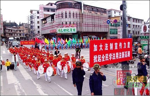 突出重点内容开展法制宣传教育,进一步提高公民的法律意识和法律素质,坚持法制教育与法治实践相结合,深入开展依法治县工作。12月24日一早,以“实施五五普法 建设和谐德化”为主题的“五五”普法踩街活动在我县进行。//by http://CiDu.Net/
