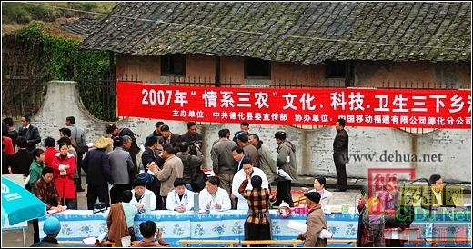 2007年元月16日,德化县2007年“情系三农”文化、科技、卫生三下乡活动在赤水镇拉开了帷幕,由县委宣传部联合县文化、科技、卫生、书法协会、移动等9家单位给农民朋友送来了科技、文化和卫生知识。