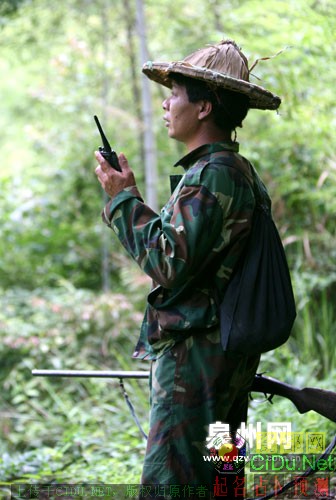 巡逻一圈后,老陈找了个野猪可能通过而且视野比较好的地方坐下来守候。一个小时过去了,小山包里没有一点动静。“看到没有?”老陈掏出对讲机询问。“还没有哦。”驱赶野猪的猎人回答。