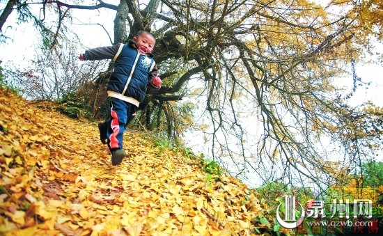 戏耍落叶间