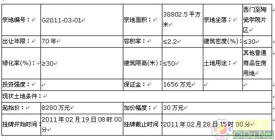 G2011-03-01 号地块:2011年02月19日08时00分 至 2011年02月28日15时00分 ;