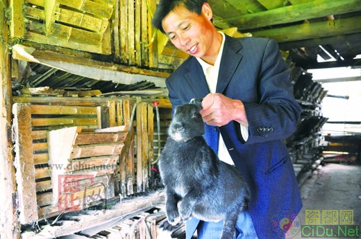 养殖户在察看黑兔生长情况