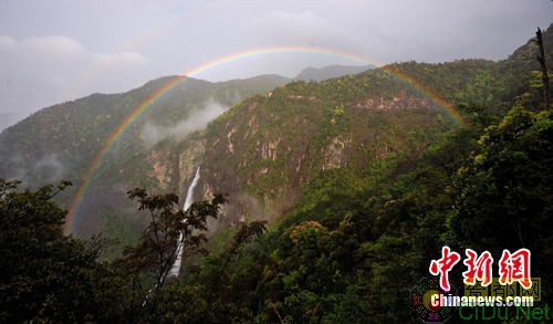 国家4A级旅游景区福建 德化石牛山景区的岱仙瀑布彩虹。