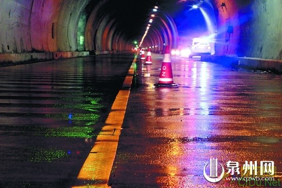 降雨和刹车水易导致隧道内湿滑