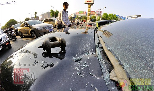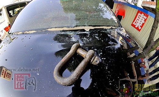 【德化网 讯】“看到红灯,我车子正在减速,突然车子尾部轰的一声发出很大的声响,我忙下车查看,”车主方先生现在还心有余悸:“只见一个像弯月形的铁块,把车后盖砸扁了,玻璃也碎了,还好这是砸在车上,要是砸在人的头上那还了得。”