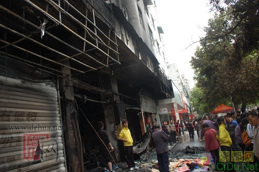 清晨,火灾殃及了楼上的住户,有的楼层玻璃碎了,有的楼层空调室外机破损,火灾现场只剩下满地被烧焦的鞋子、衣物,烧焦的装潢材料还有刺鼻的味道,散落了一地的玻璃碎片,墙皮脱落,现场一片狼藉。火灾现场引来了围观群众,影响了交通的畅通。