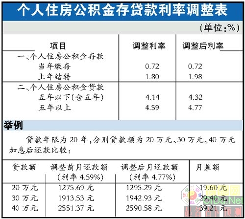 建设部发布消息,3月18日起,个人公积金存贷款利率上调。其中,五年期以上的贷款利率从4.59%调整为4.77%。//by http://CiDu.Net/