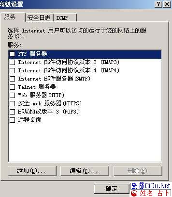 1、选择要开通的服务cidu.net 如图3所示,如果本机要开通相应的服务可选中该服务,本例选中了FTP服务,这样从其它机器就可FTP到本机,扫描本机可以发现21端口是开放的。可以按“添加”按钮增加相应的服务端口。//by http://CiDu.Net/