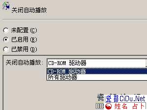 自动播放功能不仅对光驱起作用,而且对其它驱动器也起作用,这样很容易被黑客利用来执行黑客程序。打开组策略编辑器,依次展开“计算机配置→管理模板→系统”,在右侧窗口中找到“关闭自动播放”选项并双击,在打开的对话框中选择“已启用”,然后在“关闭自动播放”后面的下拉菜单中选择“所有驱动器”,按“确定”即可生效。