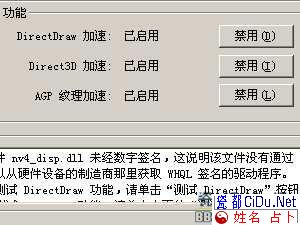 解决方法:在桌面上点击右键,依次进入“显示属性”\“设置”\“高级”\“疑难解答”,将“_blank>硬件加速”游标向右拖至“完全”,点“确定”退出;然后在“附件”中选择“系统工具”\“系统信息”,选择“工具”\“DirectX诊断工具”(由于程序搜集系统信息,所以需要稍微等待一下,可能出现闪屏),选择“显示”选项卡,依次启用“DirectDrw Acceleration”和“Direct3D Acceleration”项。
