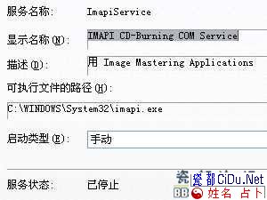 解决办法:进入“服务”窗口,找到“IMAPI CD-Burning COM Service”项,双击它进入设置窗体,将“启动类型”更改为“自动”,并点击“启动”按钮。