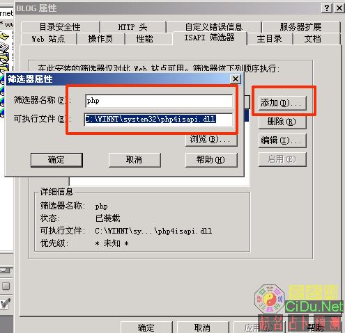 在IIS的ISAPI刷选器中添加php的筛选器