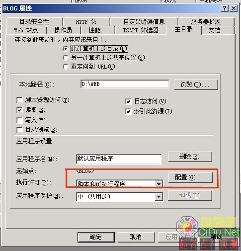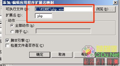 然后请在IIS下----主目录配置修改可执行路径 :C:\WINNT\php.exe