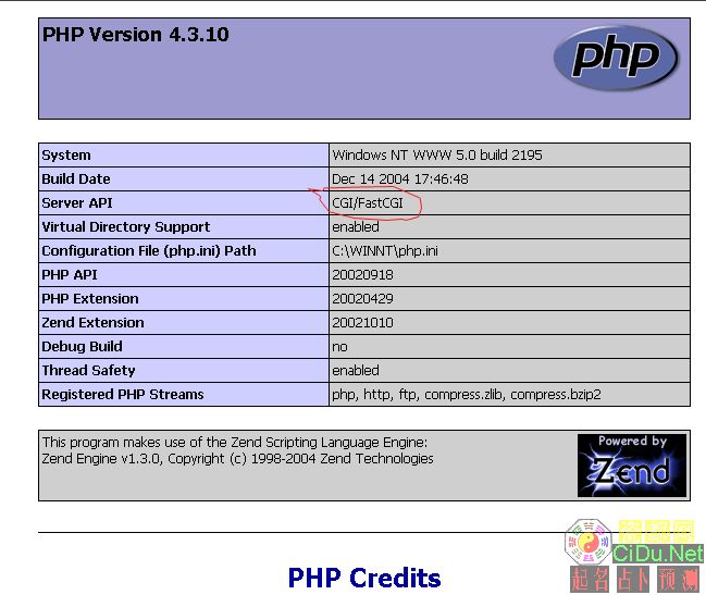 如果想用CGI/FastCGI模式,先在php.ini搜索cgi.force_redirect = 将前面的;号去掉,将值改为 0 (默认为1)