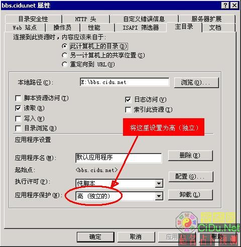 打开IIS 站点属性 -- 主目录 -- 应用程序保护改成 高
