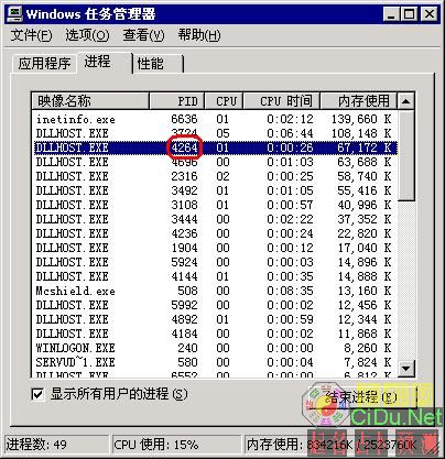 好了 现在知道每个web站点使用的dllhost.exe进程了,而在任务管理器又可以知道dllhost.exe占用的资源,那你应该知道那个网站占用资源不正常了吧