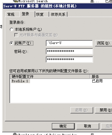 • 系统的服务内给SERV-U登录做上用户。就用你建立的Guests组SERV-U就行了
