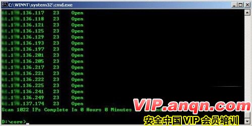 很短的时间,结果就出来了!在测试的在线365个主机中开了23端口的有35个。(图6)