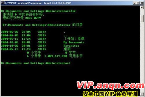 用“new”空密码登录失败,换用“adminstrator”空密码,登录成功。(图7)这样获得一个具有管理员权限的“shell”,检测到此结束。有一定基础的“命令行”操作经验的读者都知道,既然获得了“shell”,就等于控制了整个主机。
