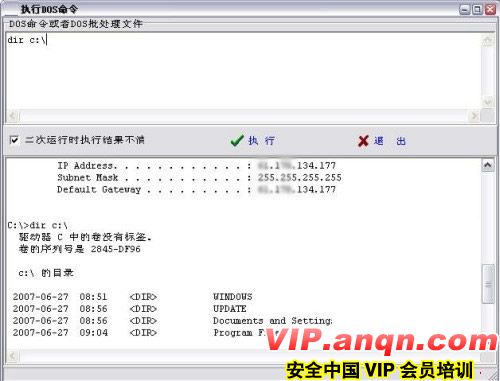 随机选一个IP,账户为“sa”,密码为空连接成功!(图11)然后敲命令”dir c:\“,可以执行!(图12)这样就等于获得了一个具有“system”权限(比管理员权限还高!)的“shell”。测试到此为止!都到了这一步,什么做不成呢?这台SQL server服务器宣告沦陷!