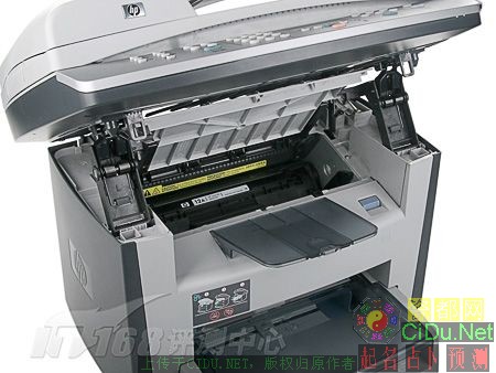 硒鼓仓设计在一体机的中部,从正面可以完成所有对硒鼓的更换和维护操作。3055采用HP Q2612A鼓粉一体式的耗材,可以打印5%覆盖率的A4幅面2000页。这也是惠普低端机型中使用最为广泛的硒鼓型号之一,在HP 1018/1020打印机上我们就可以看到这种耗材。//by http://CiDu.Net/