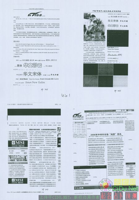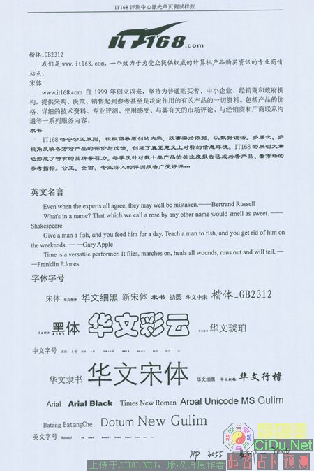 3055复印功能比较丰富,放大、缩小复印,2合1/4合1复印,复印质量选择,复印深浅选择这些常用的功能一一俱全。从复印质量上看,比打印质量还是有一定的下降,尤其是原本光滑的字体边缘会出现很多毛刺。//by http://CiDu.Net/