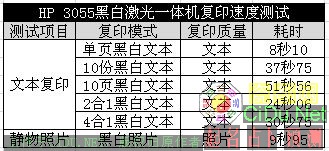 从测试来看,扫描速度较低却并没有影响到复印速度,我们由此推测扫描速度瓶颈在于扫描单元到PC终端的数据传输速度以及扫描后进行的一些图像处理。3055的复印速度比较出色,首页复印时间甚至要低于单页打印时间。//by http://CiDu.Net/