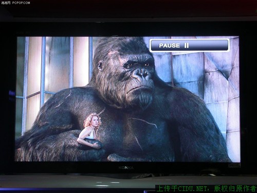 在影片测试方面,这款电视的细节表现不佳,松鼠尾部直立的毛发不容易分辨,再次通过金刚测试后,仍然出现细节不突出的问题,体会不到1080P带来的细节清晰力度。在视觉效果上没有达到1080P的标准。//by http://CiDu.Net/