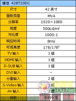 康佳42BT20DC是20系列的42英寸液晶电视,在全高清系列液晶电视中,42英寸是目前比较受欢迎的尺寸,所以关注的人群也很多,所以画面清晰程度,色彩表现力方面也是在购买前需要了解的。//by http://CiDu.Net/