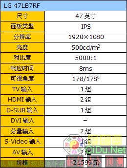 LG 47LB7RF是LG旗下最新的全高清系列产品,配有两组HDM接口,而且目前还赠送价值6980元的高档无线家电影院,画质方面的表现就要看下面的评测结果了。//by http://CiDu.Net/