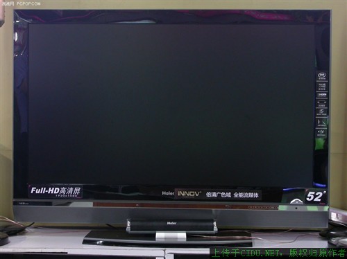 海尔L52A18-AK采用了黑色亮面边框设计,卧式音箱被放置在屏幕的下方,而且音箱采用了倾斜的风格,大屏幕也不失细节的处理,拥有海尔A18-AK的传统外观造型。//by http://CiDu.Net/