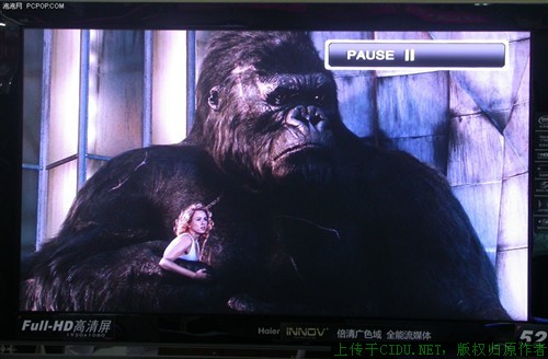 在影片测试方面我们可以看出,在清晰度方面表现不是尽如人意,在画面的细节方面的表现不是很好,如松鼠尾部细节和金刚的毛发细节表现都不是很到位。而且在噪点方面的处理也不理想,人物面部可以看到明显的噪点情况。在本型号其他尺寸产品中,此现象不明显。//by http://CiDu.Net/