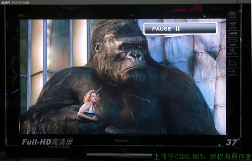 影片测试方面,此款电视的表现很不错,清晰度很高,从松鼠尾部的细节和金刚身上的毛发清晰度上来看,此款电视表现非常不错,比海尔L37A18-AK要强很多。看来老款产品并不是不值得推荐的。