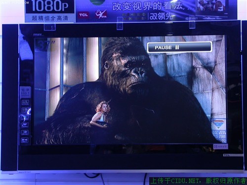 影片测试方面,这款电视的清晰度表现一般,画面效果较暗,图像细节的表现力不够,金刚毛发有堆积一片的效果,无法很好的看出层次感,在菜单中可以看到清晰度的选项,但无法调节,难道国产厂家只能将此功能做成摆设吗?