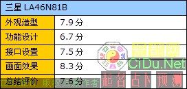 三星46N81B黑色的屏幕边框左右两侧,分别添加了透明装饰效果,亮面的屏幕边缘设计,在同样非常亮的黑水晶面板映衬下,也失去了往日的光彩。而且在屏幕中下方还采用了三星R8系列的蓝色背光效果。//by http://CiDu.Net/