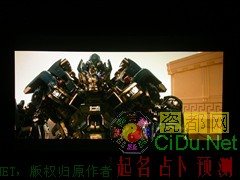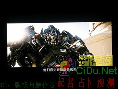 上面的这两张对比图可以看到在液晶电视上,头部的细节可以看的很清楚,而投影在黑色的通透表现上不是很好,细节表现不是很清晰,无法体现《变形金刚》的气势。//by http://CiDu.Net/