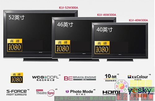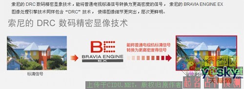 在SONY的每一代电视中,我们都会看到不少新技术的加入。从下图中我们可以大致了解到新W系列的10大特性,如今作为国际品牌的中高端产品,Full HD全高清的面板配置已不再稀奇,新的WCG-CCFL背光系统、BRAVIA ENGINE EX图像处理引擎及10BIT面板驱动技术成为了新W系列的主要卖点。//by http://CiDu.Net/