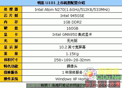 编辑观点:明基U101采用10.2英寸宽屏幕(LED背光模组)设计,凌动处理器、大容量硬盘、无线网卡、蓝牙无线传输模块和摄像头等配置一应俱全,非常值得购买。//by http://CiDu.Net/