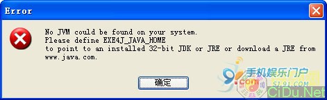 注:如果您的电脑没安装过JAVA运行环境,则会报以下错误