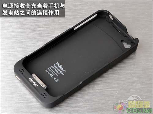 Receiver Case(电源接收套)看上去跟苹果皮(一件在touch上加入通讯功能的产品,外形像iPhone保护套)十分相似,厚度方便比苹果皮要薄,但比一般的iPhone保护套要大一点,因为Case在背部装有接收磁场的线圈,底部还有连接iPhone的接口。(XMW)