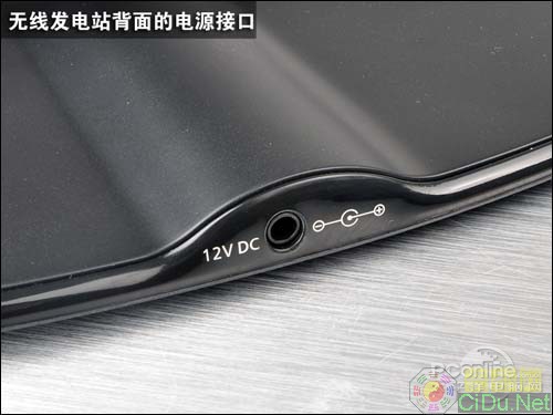 Wireless Power Station(无线发电站)设计得十分轻薄,长宽跟成年男子的手掌大小差不多,两边的充电平台厚度比iPhone4还要薄,整体设计简约美观,无线发电站上面甚至没有一个按钮,看上去像一件装饰品多于像一件电子产品。Wireless Power Station(无线发电站)的背部是电源线插孔,通过电源适配器输入12V的直流电。(XMW)