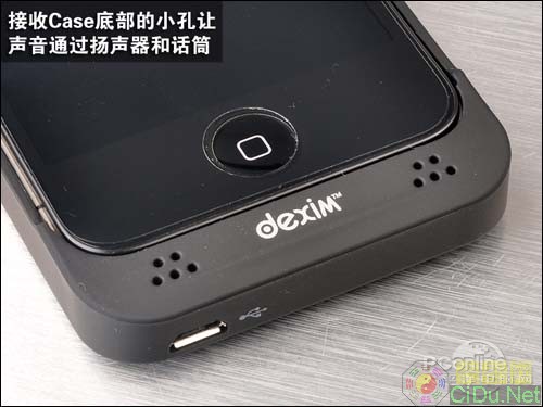 由于iPhone4的扬声器和话筒都是在机身底部,所以Case的底部也预留了几个孔供声音进出。客观的说,每次无线充电都要把手机放进Case中,不是比直接插上电源还要麻烦吗?特别对于一些平常手机有戴保护套的用户来说,充点前要把手机从原来的保护套中取出,再放进充电Case中,冲完电再做一次重复的动作,确实是十分麻烦。(XMW)