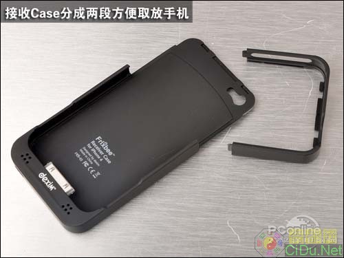接收Case分成两部分,分别是主体部分还有顶部留出的电源键、耳机接口、音量键位置的另一部分,方便用户把手机放进Case里面,因为Case的底部是线圈,不能弯曲,只有分成两段才能把手机放进去。(XMW)